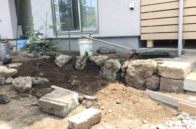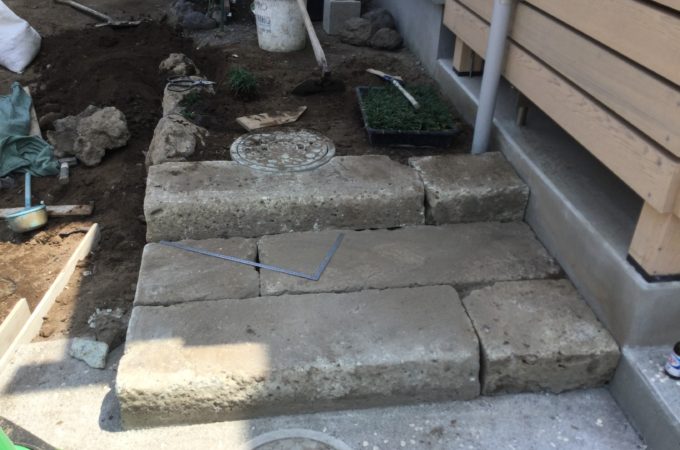 大谷石での階段作りと浅間石の石組み