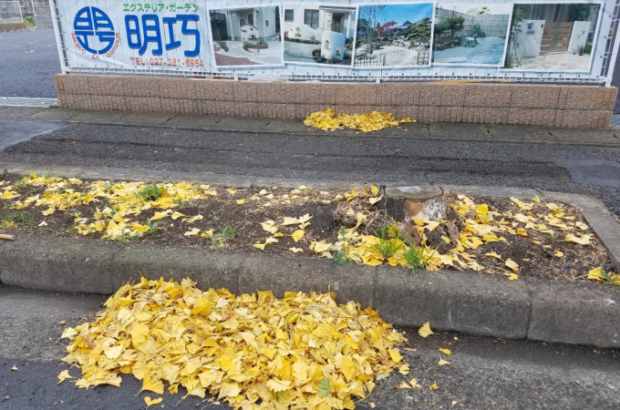 イチョウの木の落ち葉…しばらく観賞するか⁉ それとも掃除するか⁉